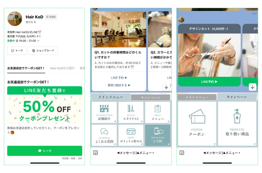 美容室を想定したLINE公式アカウントを構築しました。